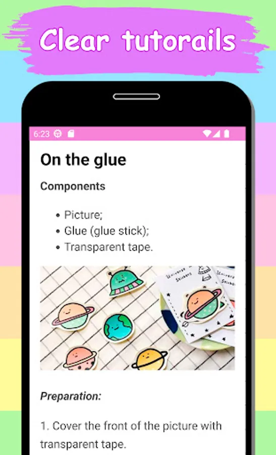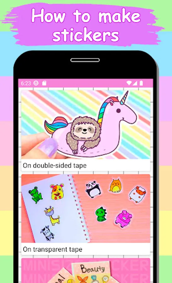 DIY stickers is step-by-step instructions on how to make stickers out of improvised materials: scotch tape, glue, paper.