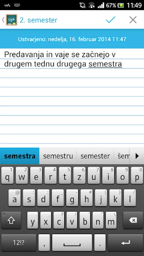 Last update brings a new design , support for the Android Gingerbread operating system, a new shape of events- in the form of a calendar that allows for greater transparency, within the notes you can decide between different display modes, including categorized. Gradebook offers an overview of scores and tasks of the selected subject, the color pallete has also been updated. The application also supports data export , saving you time if you decide to reset the phone to factory settings and reinstall the application. Also schedule has not remained without change,it has updated look and the possibility of adding several schedules. In addition, working with schedules is now faster and easier since the application will care for hour input, everything you should do is set fixed intervals, the length of the hour , lunch , break ...