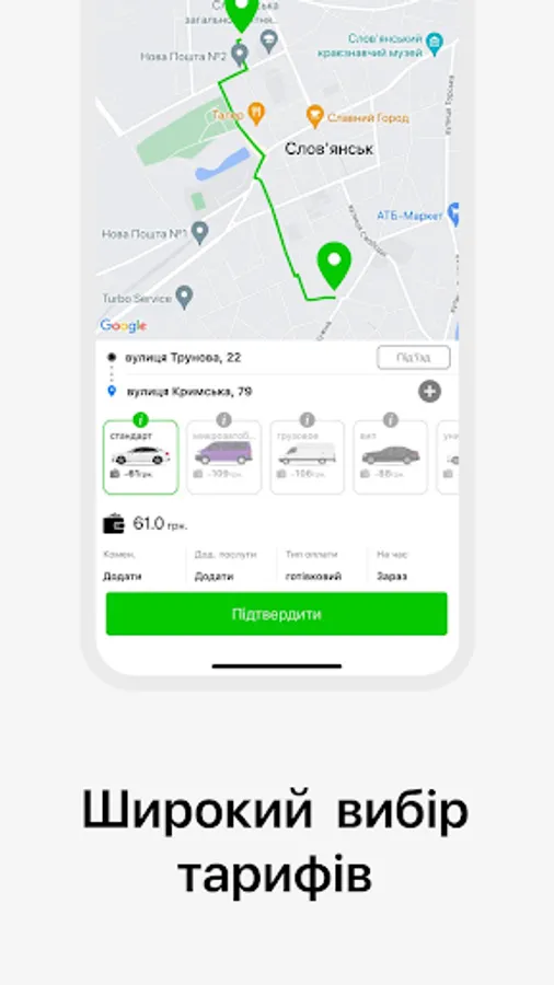 Order a taxi in Slovyansk using your smartphone, meet the driver and enjoy an inexpensive trip.