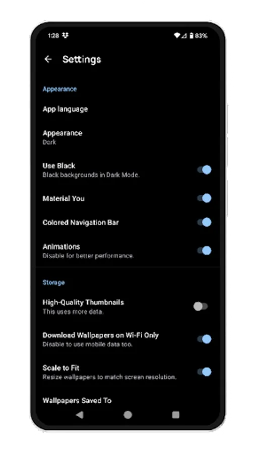 This app reads all wallpapers from internet. That is why the app itself is so small.