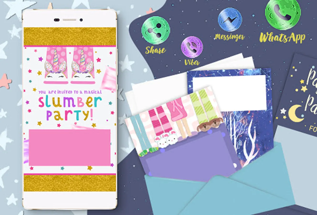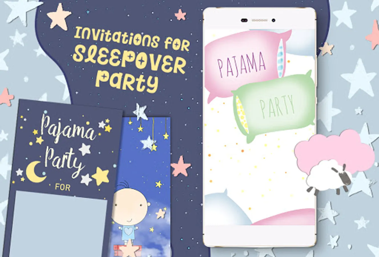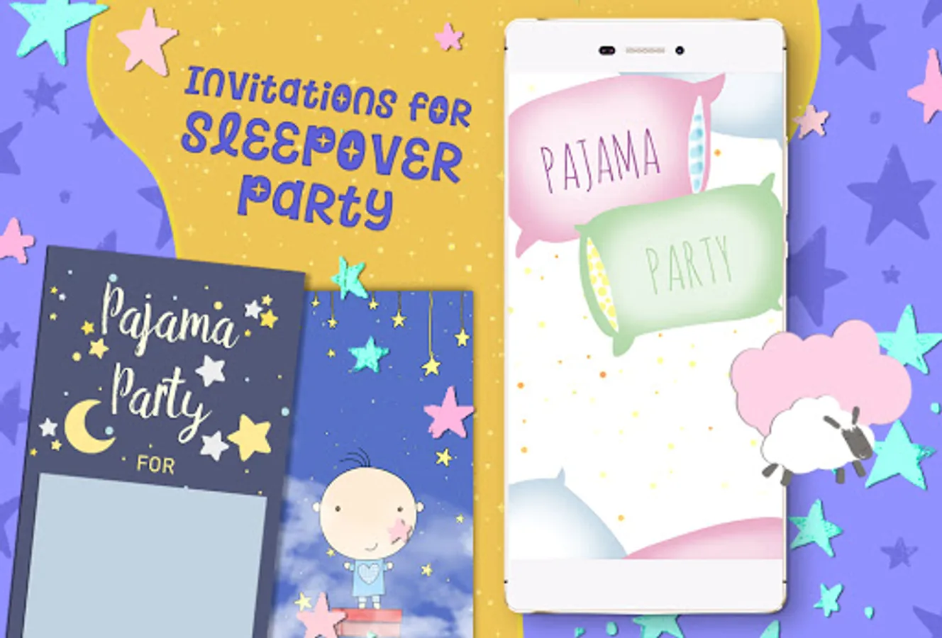 If your son or daughter want to have a pajama party, download 🎉 Sleepover Invitation Cards – PJ Party Card Maker 🎈 and don't worry about having to buy party invitations. With this free invitation card maker you can customize digital slumber party invitations from the convenience of your phone! Use this invitation card making app to design virtual invitations for your daughter's slumber party dress up, princess slumber party, barbie sleepover party, or any other girly PJ party. You can even use this party invitation card maker and invitation designer to make girl or boy sleepover birthday party invitations. Just select slumber party birthday invitations template to suit the birthday theme, input the invitation message and send these electronic invitations to their friends! It's a perfect invitation card maker for girls and boys as well. They will love these beautifully personalized slumber party invitations and you will save your time and money too!