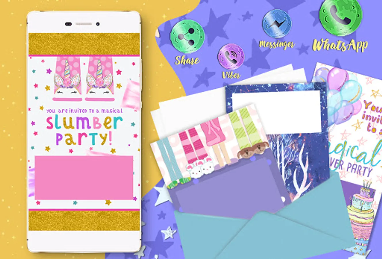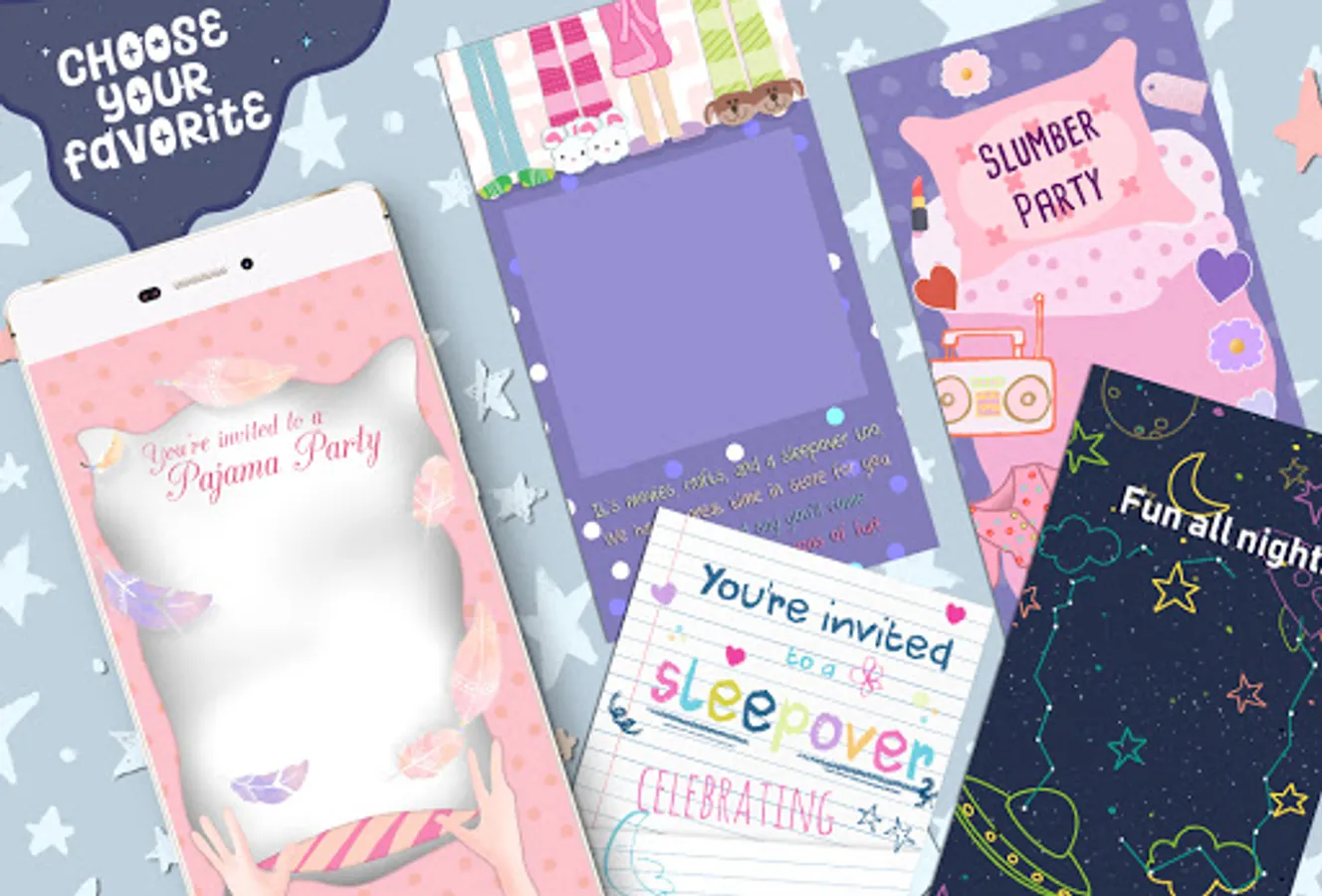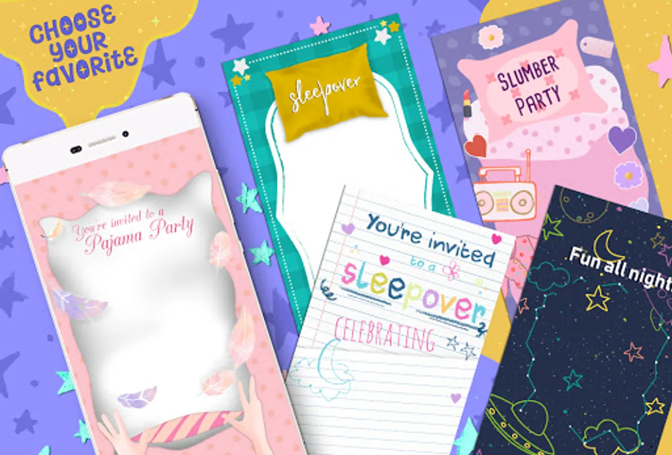 If your son or daughter want to have a pajama party, download 🎉 Sleepover Invitation Cards – PJ Party Card Maker 🎈 and don't worry about having to buy party invitations. With this free invitation card maker you can customize digital slumber party invitations from the convenience of your phone! Use this invitation card making app to design virtual invitations for your daughter's slumber party dress up, princess slumber party, barbie sleepover party, or any other girly PJ party. You can even use this party invitation card maker and invitation designer to make girl or boy sleepover birthday party invitations. Just select slumber party birthday invitations template to suit the birthday theme, input the invitation message and send these electronic invitations to their friends! It's a perfect invitation card maker for girls and boys as well. They will love these beautifully personalized slumber party invitations and you will save your time and money too!