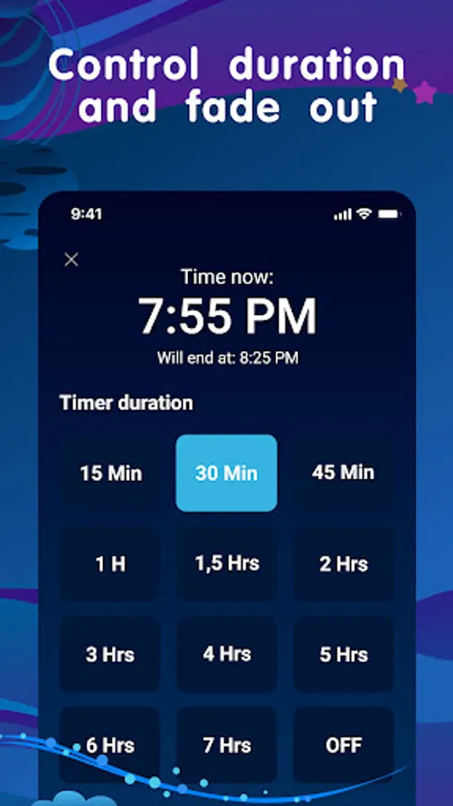 With equaliser, you can adjust the volume of each sound separately in the sleep music combination. A sleep timer will help you adjust the duration of the sound and fade in and out of the infant sleep sounds.