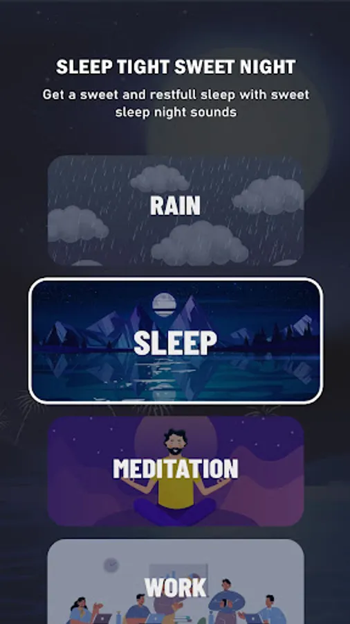 Better Sleep Meditation Music is an immersive mobile app, thoughtfully crafted for your sleep needs, and available on the Google Play Store. It is designed to induce relaxation, banish stress, and enhance your overall sleep quality. Our app boasts a vast array of top-tier nature sounds, guided meditations, and sleep aids to help you unwind and attain a state of serenity.