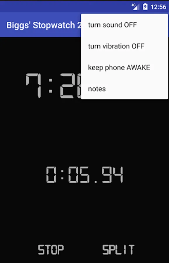 Simple stopwatch app that uses very little CPU, expands to fill the screen, has a split time option, and doesn't have any adds nor use any weird permissions. 'Nuff said.