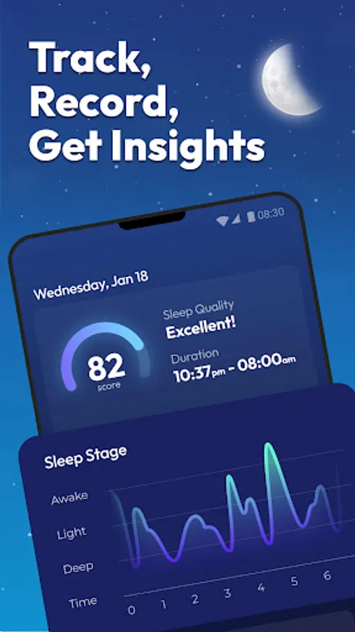 How is your nightly sleep quality? Viewing daily, weekly and monthly sleep reports, you can track your sleep at ease. No need to put your phone under the pillow. Placing your device nearby would suffice.