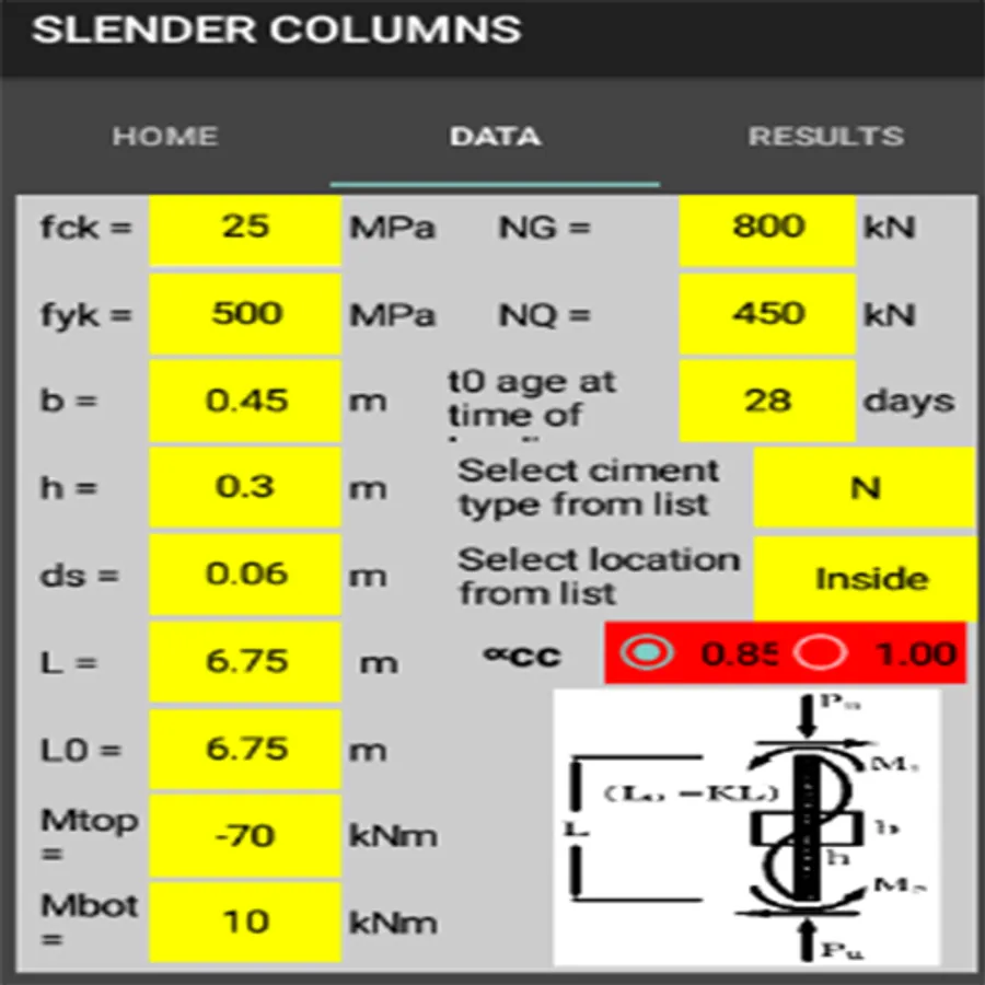 SLENDER COLUMNS (EUROCODE2) Screenshots