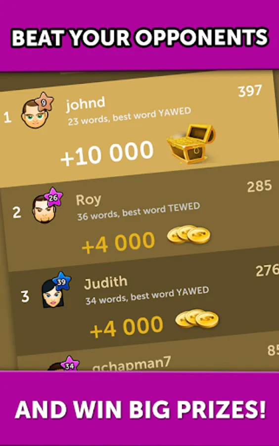 Take on the world in 1-vs-1 word battles to win trophies and exclusive prizes!