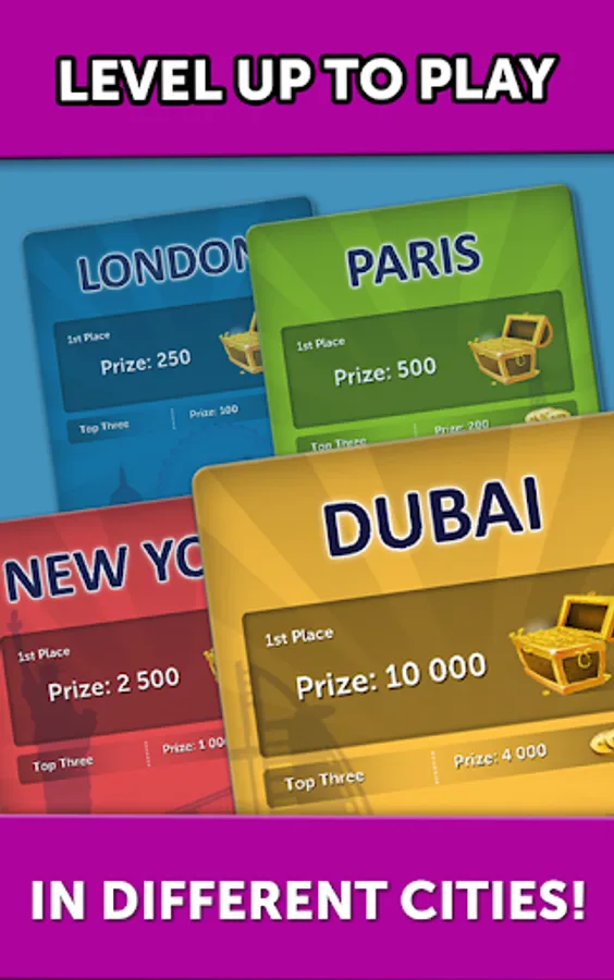 Word Warriors’s level system means you’re always facing a challenge. Play matches to increase your ranking and get access to more exclusive match locations, where you play against only the best Word Warriors.
