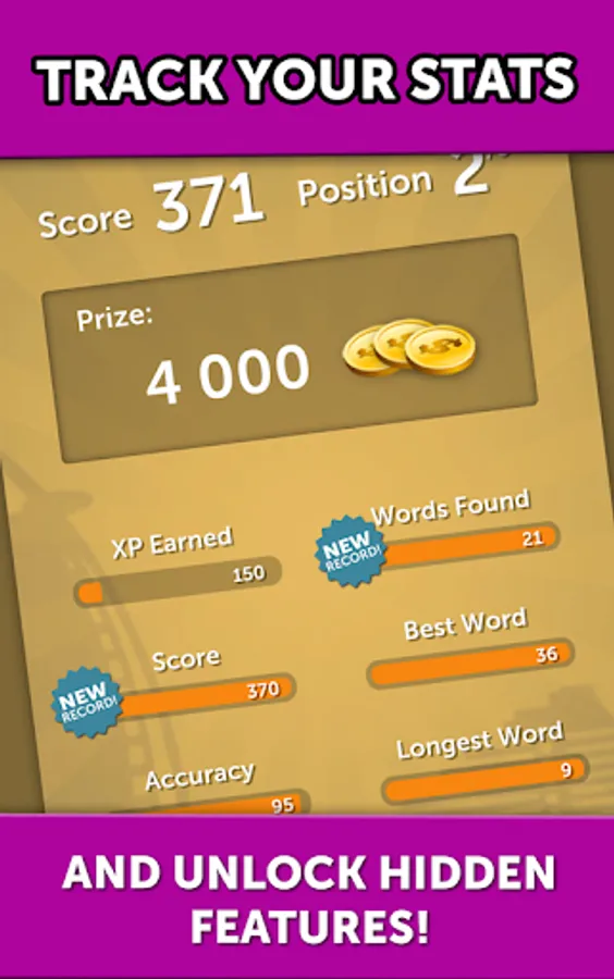In every competitive 1-vs-1 match you play, there’ll be Word Coins at stake – win the match and the Coins are yours. You can use these to enter higher ranked matches with bigger stakes, or to buy new items in the Shop.