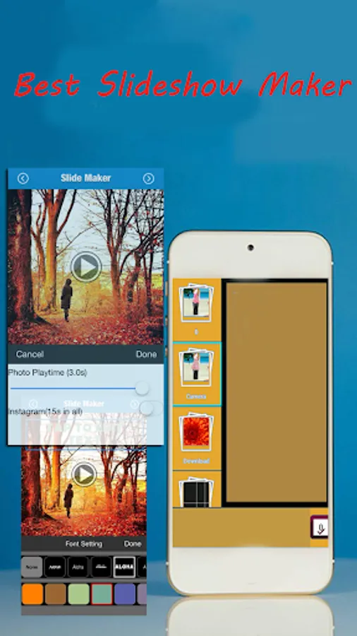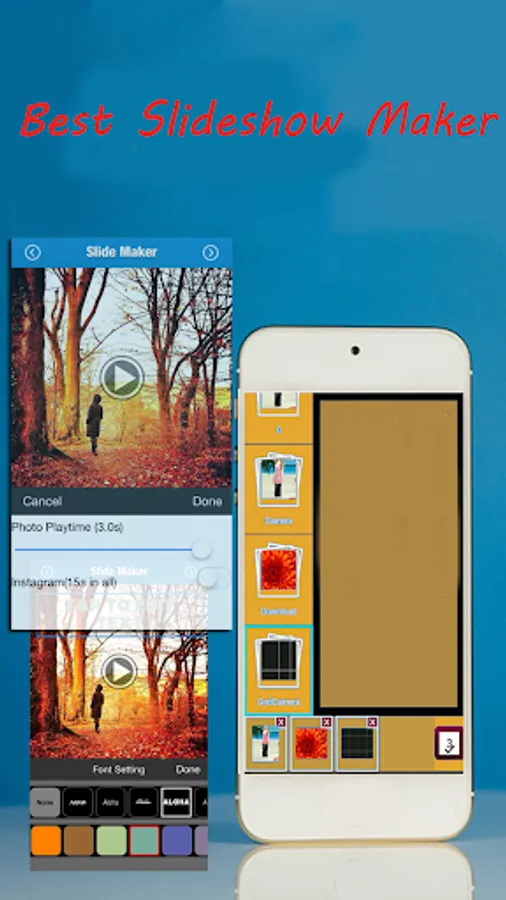 There are not many slide show maker that are both easy to use and powerful. This is what inspires us to create an awesome photo slideshow maker app that turns simple pictures to video with just a few taps. Try our app that you will realize that our FREE slide show maker is the best.