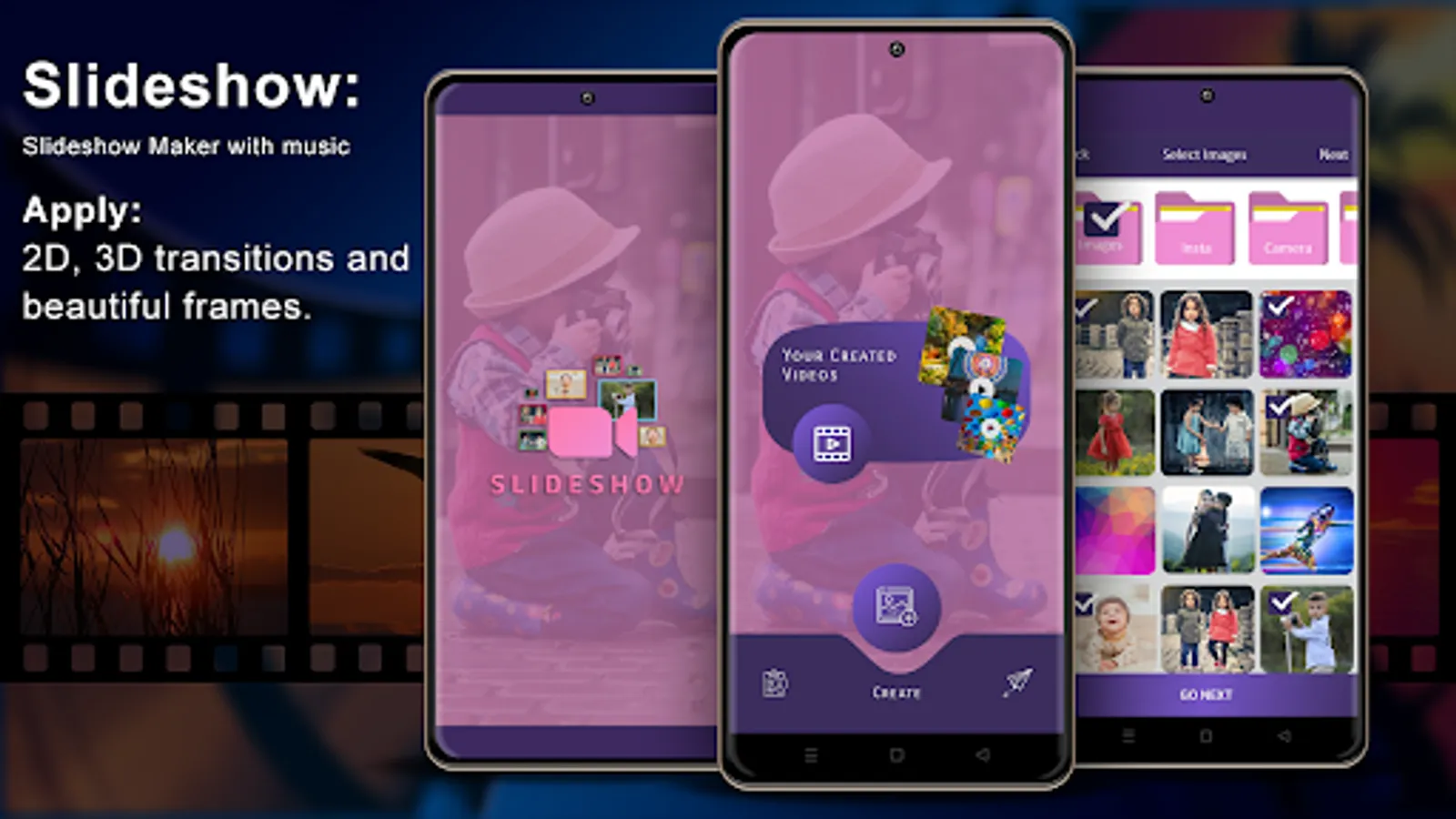 "Slideshow Maker": with Slideshow maker, you can combine your photos with music, frames, and 2D, 3D transition effect. With a slideshow maker, you can create amazing videos from your photos.