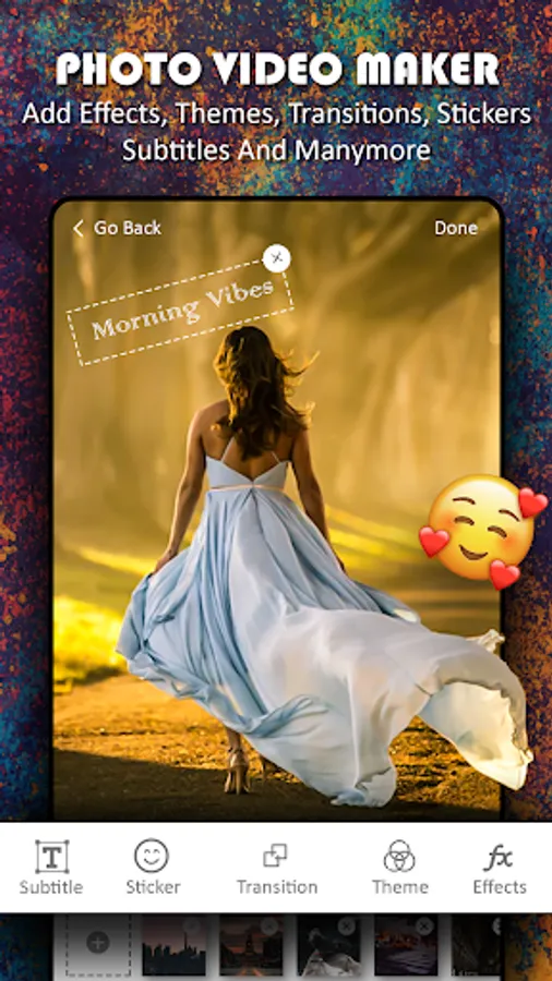 Best app to make video form photos and also you can add your fav music. Easy n fast video maker with music. Video Slideshow Editor is the easiest way to create, edit and share amazing photo music videos and stories.