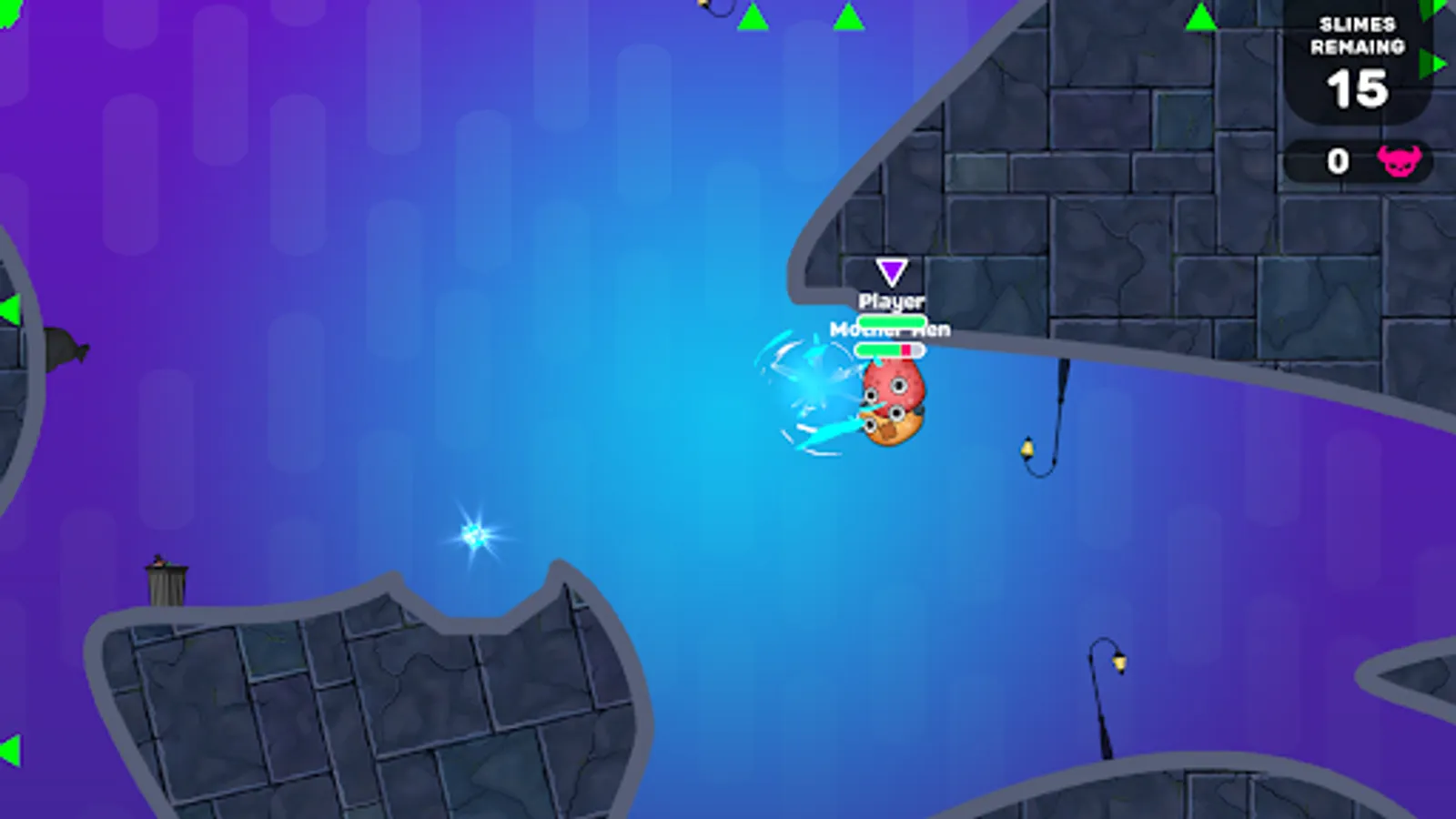 A player controls the slime, aims, and shoots the slime bots. The slime can move only by jumping. Also, slimes have jelly physics.
