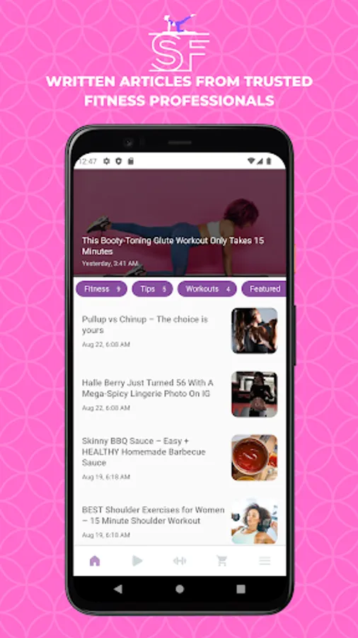 Exclusive app-only content for the serious girls who want even more content than what's on our publicly available blog and articles section. Although this section contains much of the same topics and workouts for women as the articles section, it's more in depth. Here you can get longer workout videos, complete meal plans (like for months), and super professional articles from personal trainers that can be downloaded as PDF to your device!