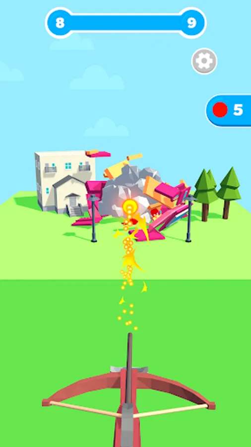 Buildings, fences, towers, walls... It's all got to go! Don't leave anything behind! Shoot for the max number of points to get the best reward and be the slingshot master! Prove to the world that no one can shoot better than you!