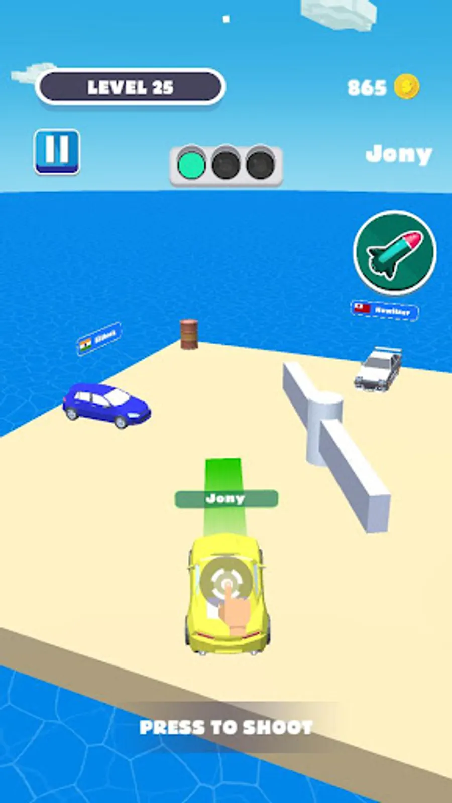 Control the car by moving your finger across the screen. Knock your racing rivals out of the arena to be the last one standing. Don't let the difficulties scare you - have fun, race with your enemies and become the coolest rider in the arena!