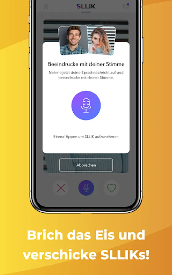SLLIK is new, innovative and groundbreaking. Impress with your voice and meet new people and singles around you as personally as never before.