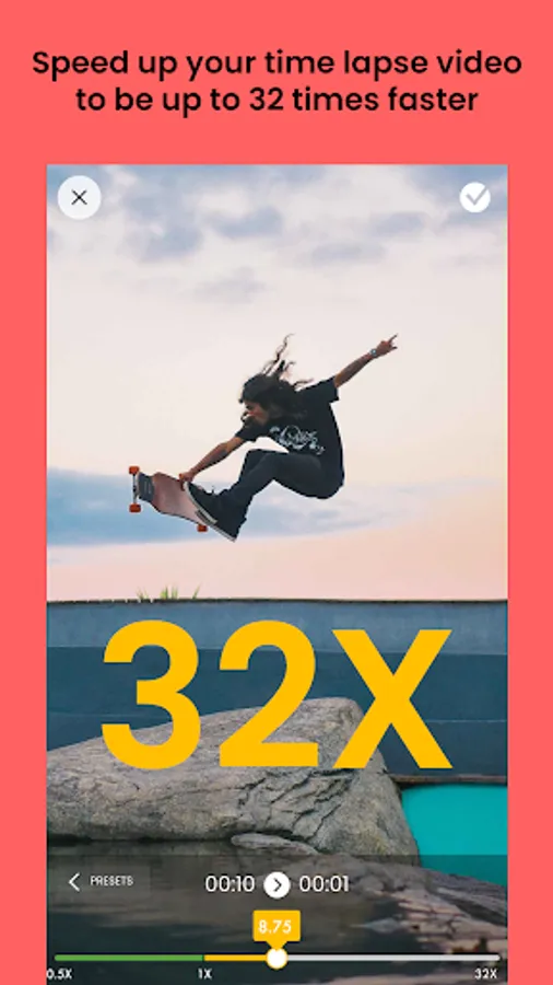 * Shoot handheld time lapse videos in motion— while you're walking, running, jumping or falling.