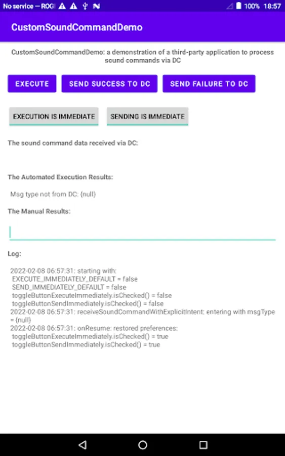 9. DC's special activity CustomSoundCommandResultsReceiver will show up.