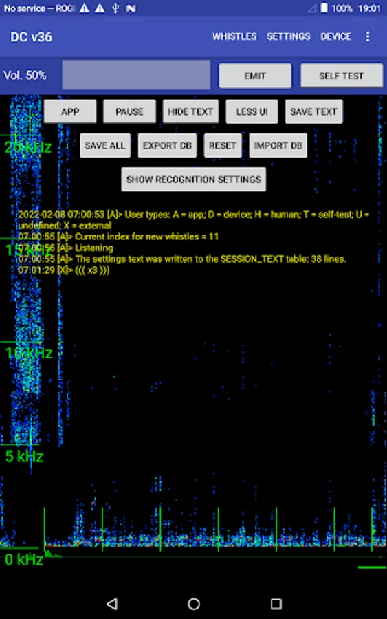 Designed to demonstrate the execution of custom sound commands emitted by dolphins (or others) and captured and recognized in real-time by the DC Dolphin Communicator app, also for Android. The human user can define the frequencies of a sound command in DC, a dolphin or other participant emits the sound command, DC recognizes it in real-time, sends it to this app, which executes the programmed logic for it, and sends the results back to DC.