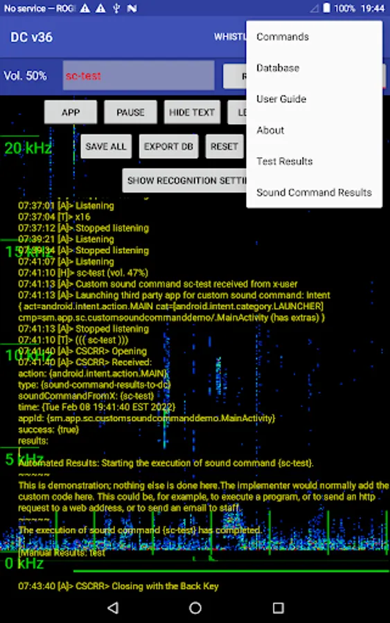 Using this app as an example, Android programmers can write their own app to process customized sound command via DC.