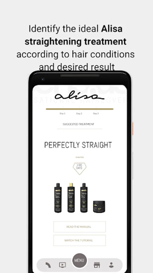 ● Alisa tool: identifies the ideal straightening treatment according to hair condition sand desired result
