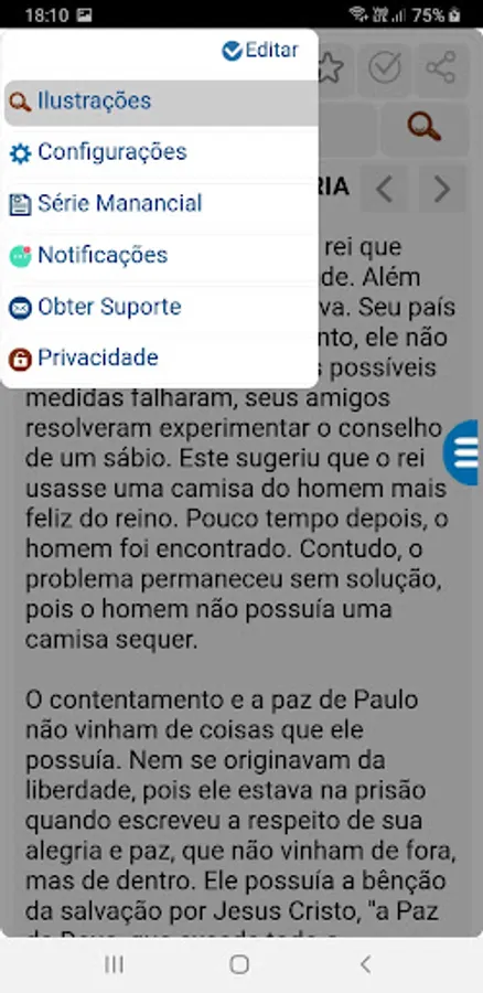 This application also has the additional and online service Fonte Manancial with illustrations, audio studies, verses, tips and curiosities. When starting the app, being online, the access button to the service will appear at the footer with hundreds of studies and audio sermons for your edification.