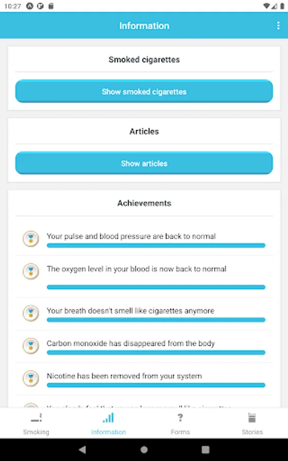 Take a deep breath is an app that helps users track their stopping progress and provides helpful information about nicotine and the dangers of nicotine