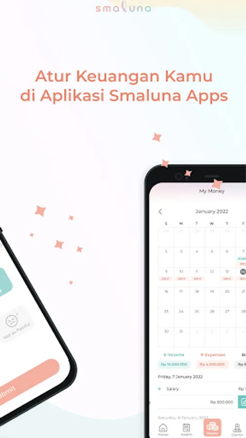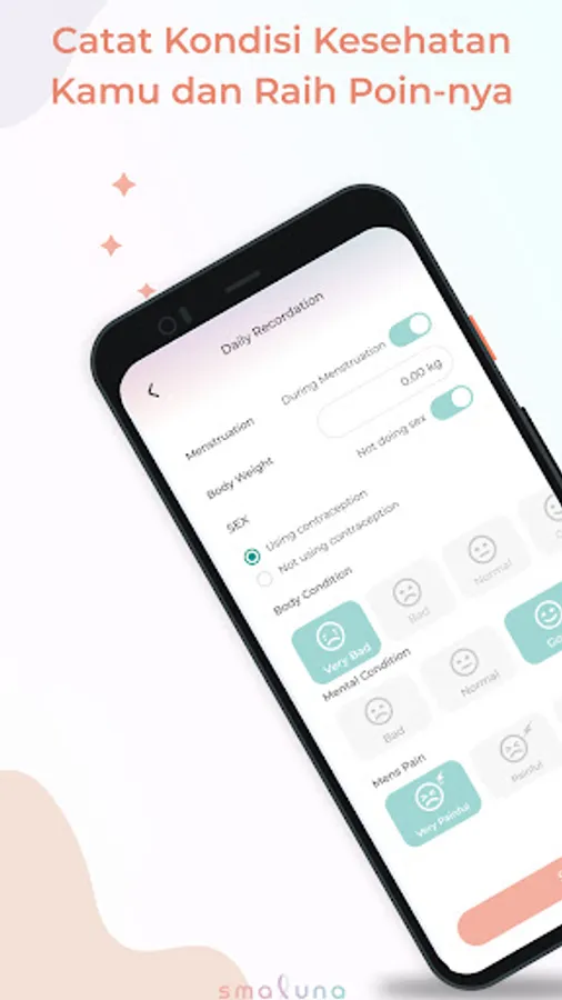 Fill out a list of questions about health and record financial transactions every day using the Smaluna Application