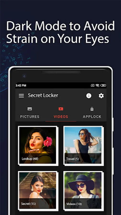 • Dark Mode feature helps to safe open personal photo, video locker during night with Dark theme.