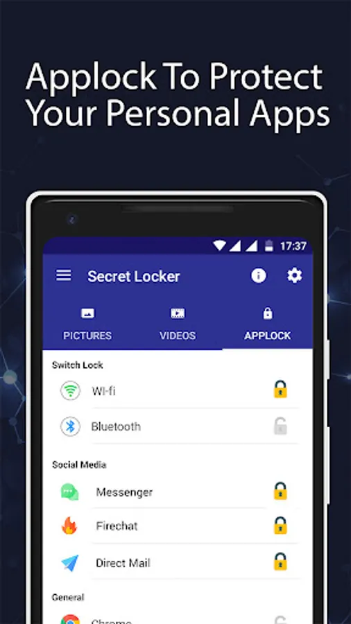 • Powerful and Instant Lock Apps system to keep safe your private media.