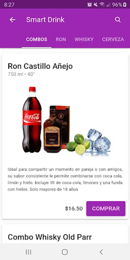Smart Drink is a beverage distribution platform that specializes in bringing alcoholic and non-alcoholic beverages to its customers in various places. Customers can simply order their desired beverage with options such as whiskey, beer, rum and more. The brands sold include Old Times, Chivas, Buchanans, Old Parr, Pilsener, Club, Añejo Castle, Bacardí, Ruskaya, José Cuervo, Zhumir, Amaretto and more. For those looking for non-alcoholic options, malt drinks are also available.