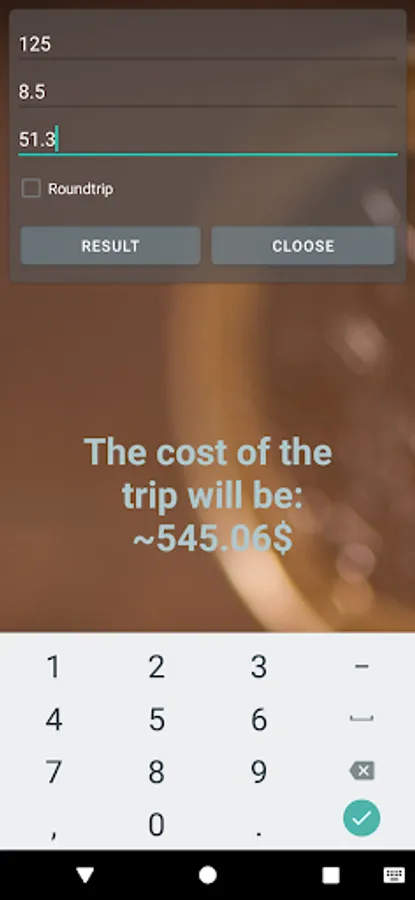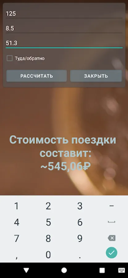 Приложение предназначено для расчета минимальной стоимости поездки на личном транспорте без учета особенностей маршрута, погоды или транспортного средства. Оно позволяет приблизительно оценить ожидаемые затраты и помочь при планировании маршрутов.