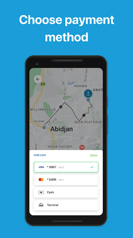 Order a ride in Cameroon, Kenya, Ivory Coast, Senegal, Nigeria, Ghana, Gambia, Zambia from almost anywhere.