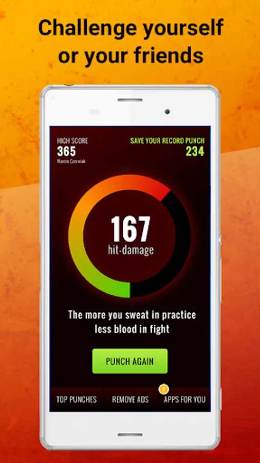 Throw an "air blow" with your smartphone and Punch O Meter calculates a hit score based on accuracy, speed and strength.