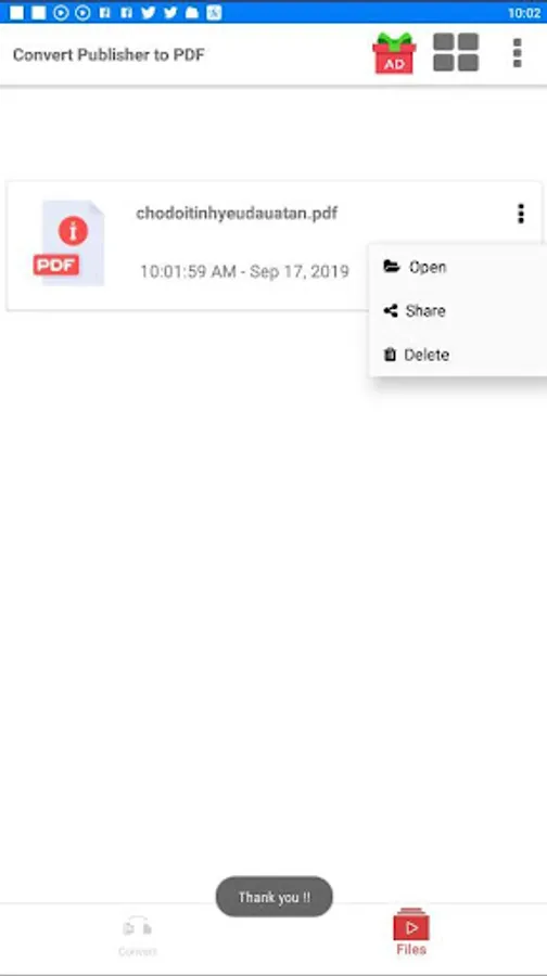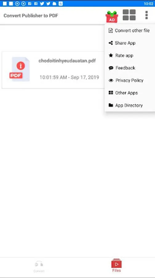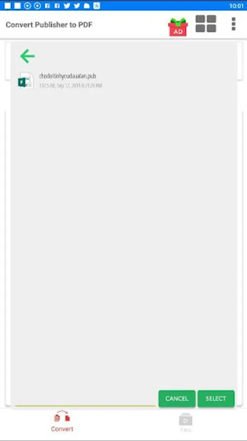 Select a Publisher file from your Android phone to convert Pub to PDF, this is free PUB to PDF converter with can convert files of any size.