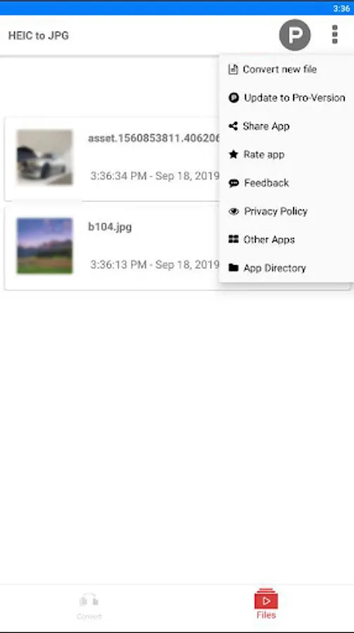 This is a HEIC Converter , it support single file converting only and have some ads, if you want to multi files convert, and no-ads you can update it to Pro version!
