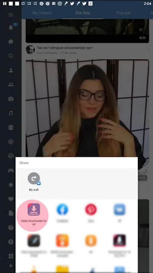 - In the list that appears, simply select the "Video downloader for Vk - vkontakte" app