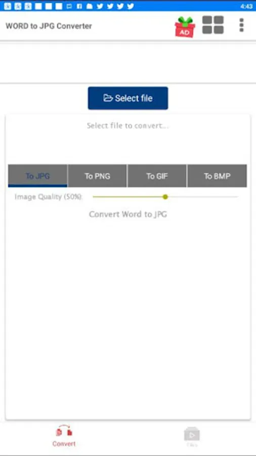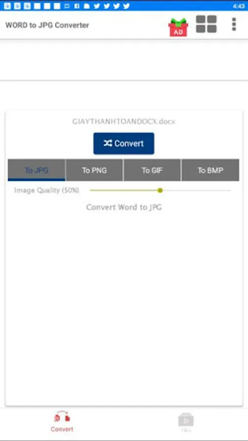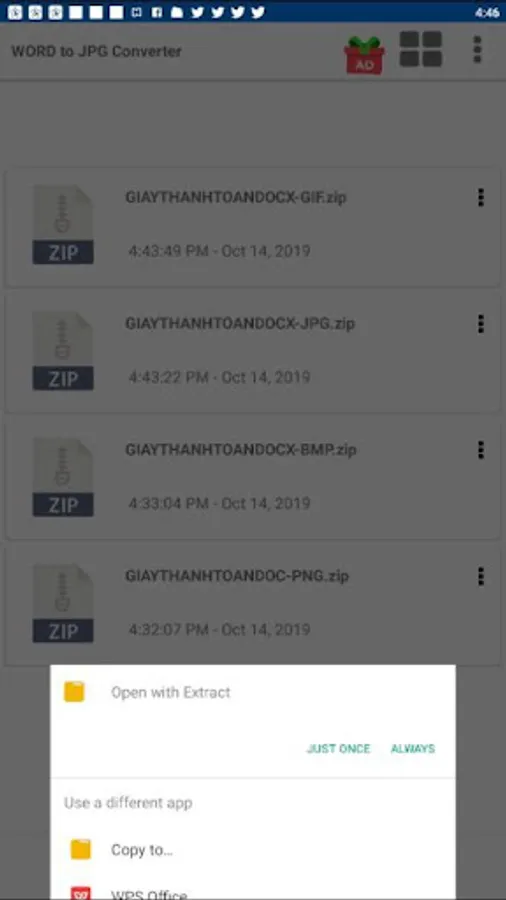 All files ZIP are saved on folder Phone/Word2JPG-Converter