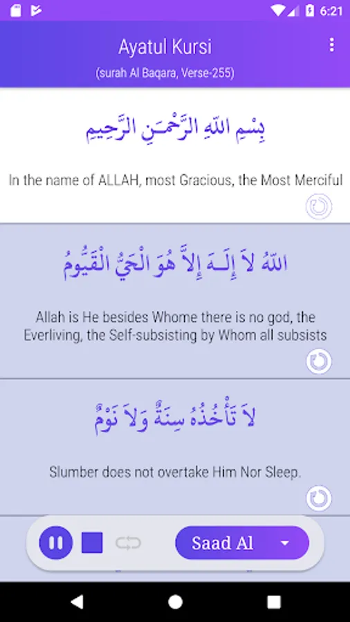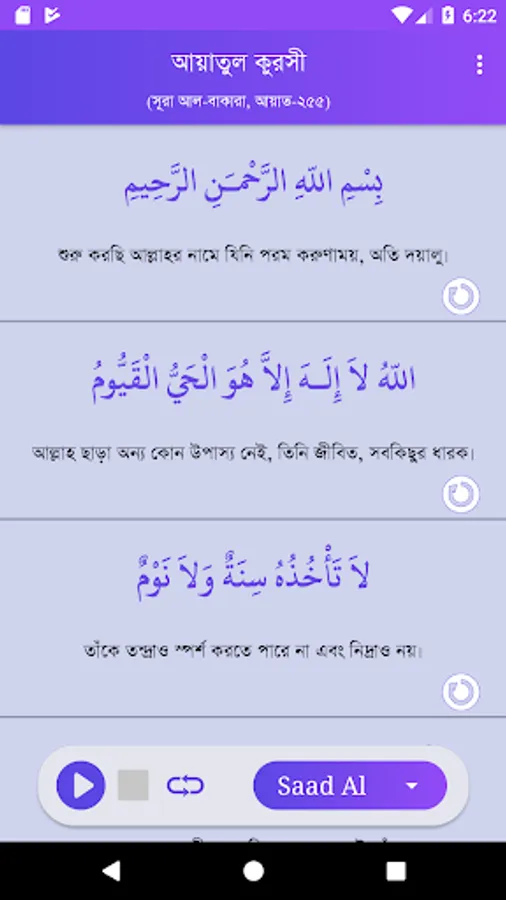 Ayatul Kursi Audio app is a free app where you can learn Ayatul Kursi from reputed reciter. Ayatul Kursi is an Ayah of Surah Al-Baqarah (verse255). Our Prophet Muhammad (SM) said it is the most important Ayah in the Quran.