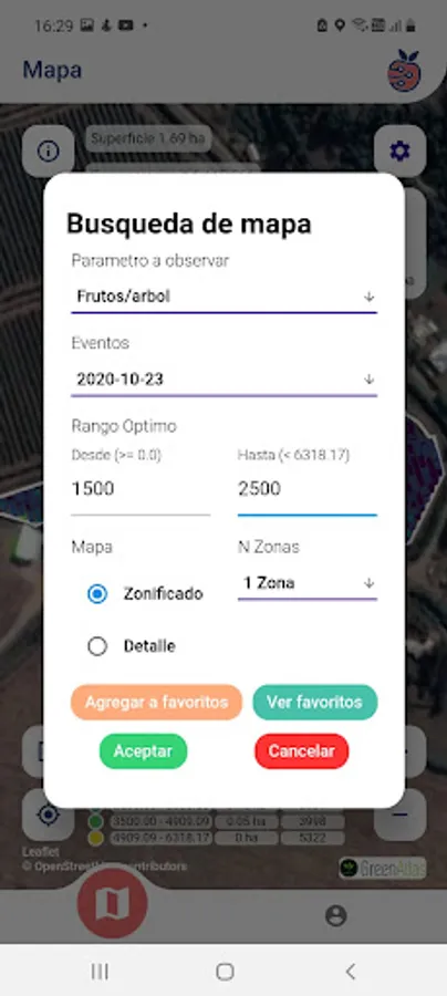 Bigfrut is a tool for managing fruit productivity data, produced by scans made by different field and remote technologies. With Bigfrut you will be able to know such relevant data as the number of fruits per tree, as well as their height, area and density. Manage different fields and establish productive goals by variety, to obtain the best quality fruit.
