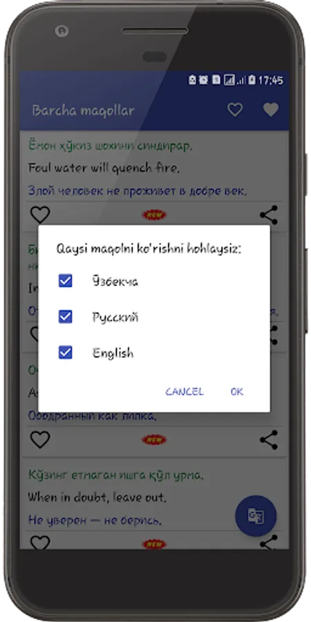 More than 1,000 Uzbek proverbs are available in Uzbek, Russian and English languages