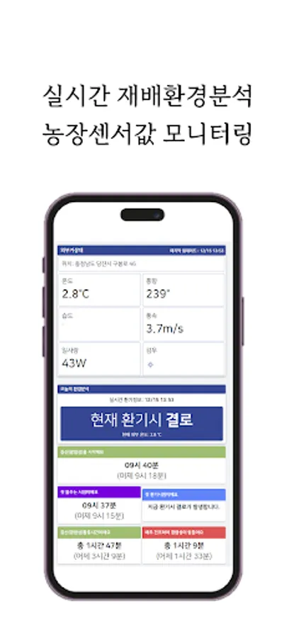 - Provides real-time environmental data to smart farm linked farmhouses in Dangjin-si, Chungcheongnam-do