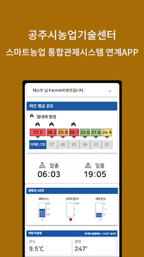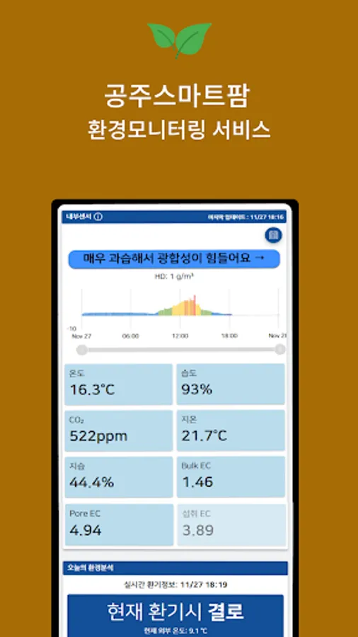 - Provides real-time environmental data for smart farm linked farmhouses in Gongju-si, Chungcheongnam-do