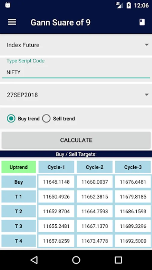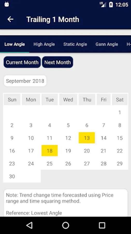 Using this application you can forecast trend reversal dates as per W . D .Gann's principle.Six different time analysis.For price trend analysis we have used following W .D .Gann principles.Named as square of 9 , square of 12 ,Mid point , Gann angle and volatility.