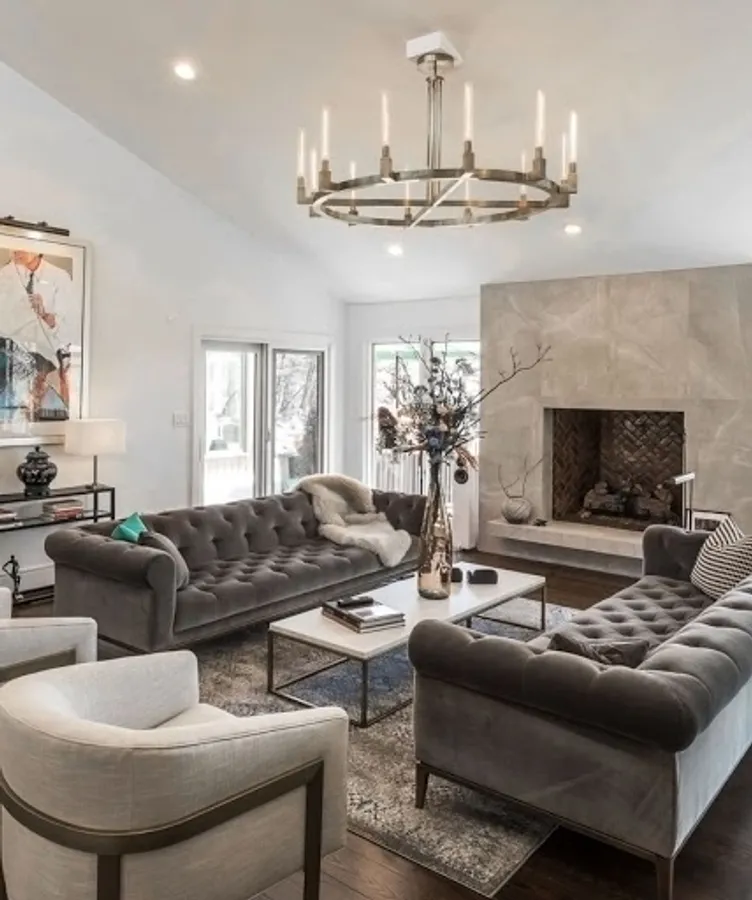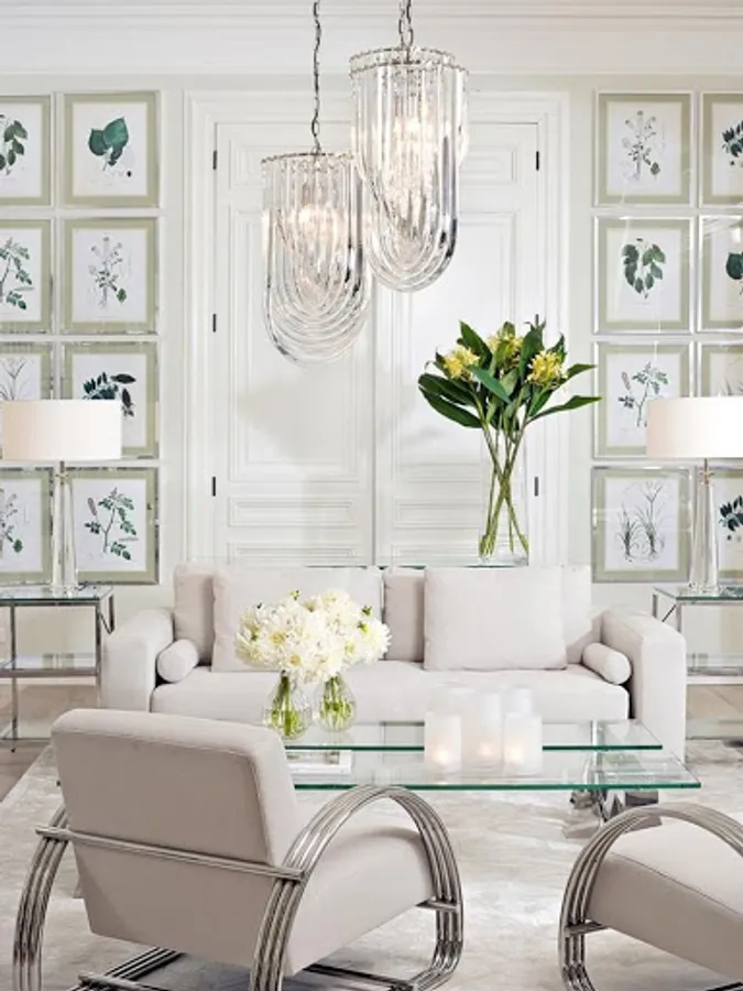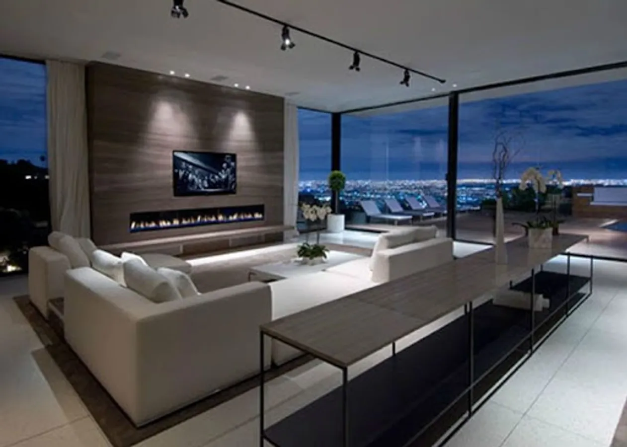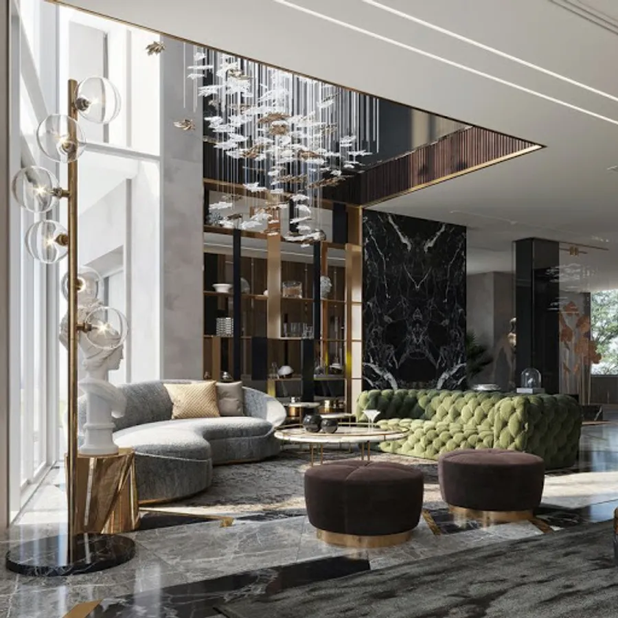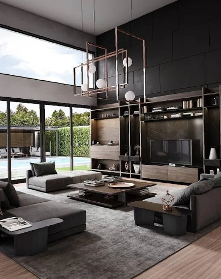 When decorating a luxurious living room, it is a great idea to play to the strengths of the room. Perhaps the essential part of this modern living room design is the eye - the contemporary hanging artwork that adorns the spaces inside. The interconnected circles and hanging sculptures take center stage and show how easy it is to optimize the interior design and decorate all four walls of your luxurious living room.