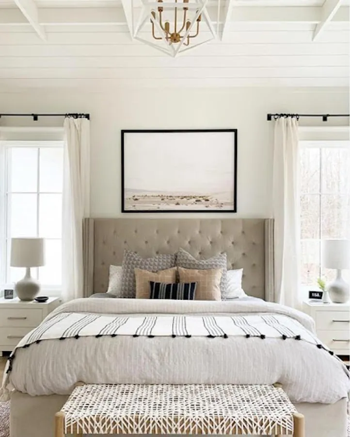 This is a white bedroom interior design style that will fit into the style of your entire home. Choose colors for walls and ceilings, as these colors compliment the white bedroom interior. Make sure the color combination makes the room relaxing and restful so you can doze off quickly at night. If you have a rustic or shabby chic style, this is a fantastic bedroom idea for you.