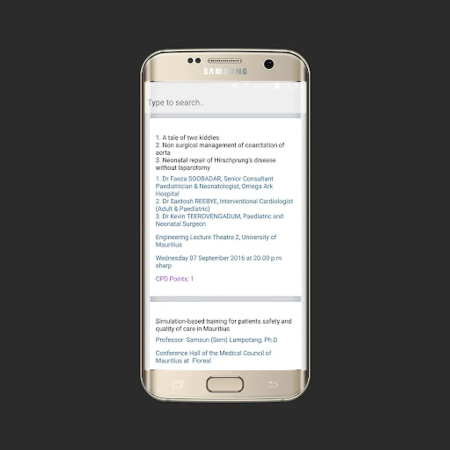 The Medical Council App provides real time information on upcoming Continuous Professional Development (CPD) events across Mauritius. It is a searchable list of events for healthcare professionals to plan for attending.