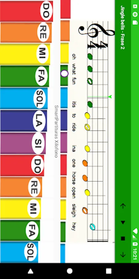 The app is a tutorial that teaches you to read phrase by phrase in an interactive way, then join the phrases and the song will be ready, it is easy and fun